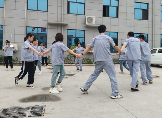 雨后清涼的空氣送走了多日的酷熱,4點(diǎn)全公司員工都放下工作,來(lái)到辦公樓前參加端午團(tuán)建活動(dòng)。活動(dòng)分為四個(gè)環(huán)節(jié):全員參與“愛(ài)的抱抱”、分隊(duì)參與“十人九足”、拔河比賽、套圈圈。